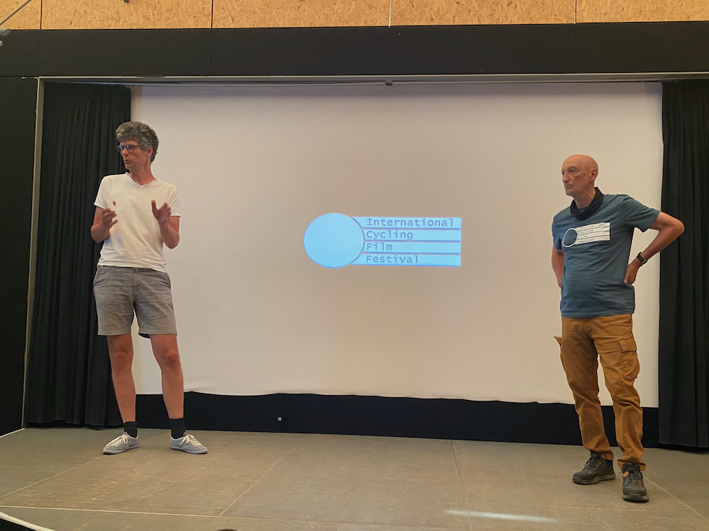 Gisbert Rogge vom Verein International Cycling Film Festival moderiert den Abend.