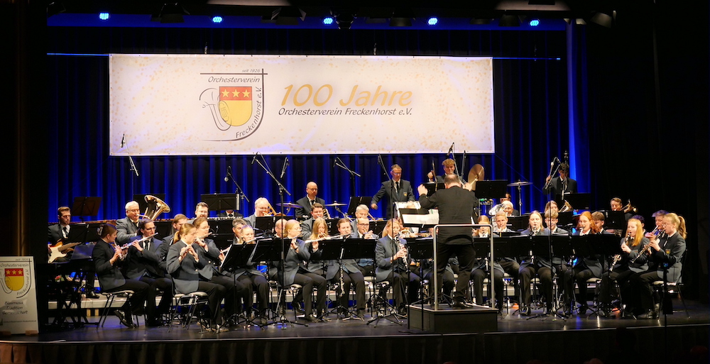 Sein 100-jähriges Bestehen feierte der Orchesterverein Freckenhorst Mitte April mit einem Jubiläumskonzert im Theater am Wall und nahm das Publikum mit auf eine Zeitreise durch die Musik der vergangenen Jahrzehnte. Von den Klängen ehemaliger Salonorchester – der Verein hatte vor 100 Jahren als Streichorchester begonnen – bis hin zu Heavy Metal reicht das Spektrum des Konzerts, das die Besucher mit stehenden Ovationen quittierten.