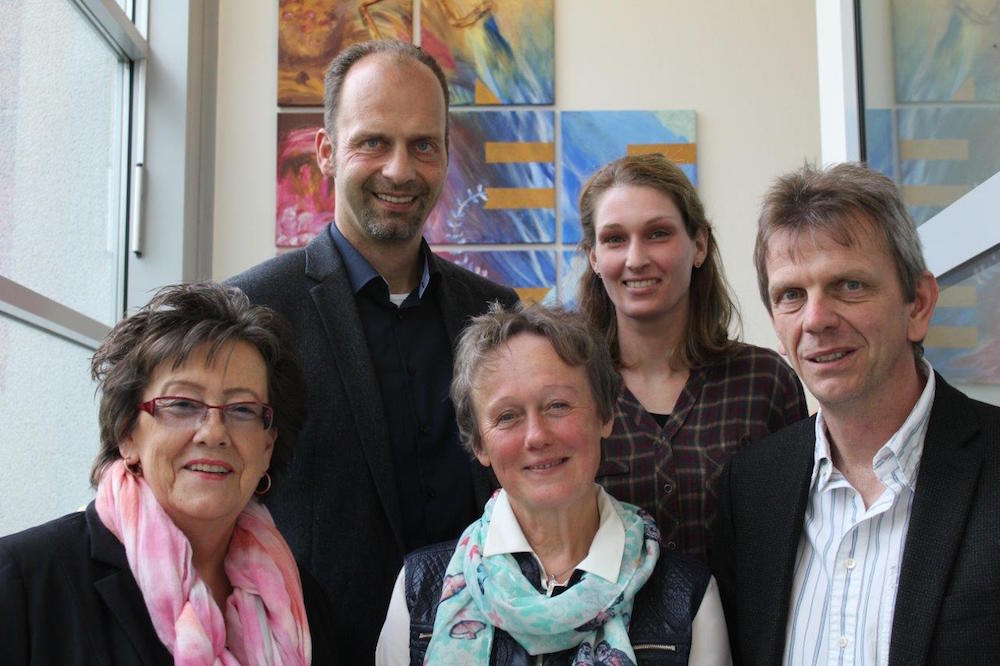 v.l. Bürgermeisterin Elisabeth Kammann, Mark Wisniewski (Personalabteilung), die Jubilarin Anna Wiebe, Carolin Rassenhövel (Personalrat), Herr Rieping (Fachbereichsleiter Bürgerdienste)