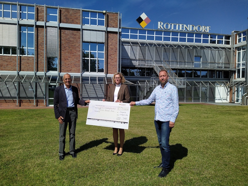Es ist unglaublich, was von unseren Mitarbeiterinnen und Mitarbeitern für die Betroffenen der Hochwasserkatastrophe gespendet worden ist“, freut sich Dr. Silke Huster, Geschäftsführerin der Rottendorf Pharma GmbH Ennigerloh. „Die Spendenbereitschaft war wirklich überwältigend.“ Gekommen war ihr die Idee zu einem Spendenaufruf beim Wandern, und schnell war die Idee, unterstützt von dem Betriebsrat, umgesetzt worden. „Wir wollten, dass die Spenden direkt ankommen und nicht in einer aufwändigen Administration verbraucht werden“, führt der Betriebsratsvorsitzende Torsten Reeke aus. „Deshalb haben wir uns für die Aktion Kleiner Prinz entschieden. Diese ist regional verankert und alle Mitarbeiterinnen und Mitarbeiter arbeiten dort ehrenamtlich.“ Die Freude darüber, dass die Spendenaktion so gut angenommen worden ist, ist bei den verantwortlichen Initiatoren sehr groß. Das zeuge von der sozialen Verantwortung der rund 1.200 Mitarbeiterinnen und Mitarbeiter. Die von ihnen gespendete Summe wurde von Rottendorf Pharma großzügig auf 25.000 € aufgerundet. „Das Geld wird von der Aktion Kleiner Prinz gut eingesetzt werden“, ist sich Silke Huster sicher. Der stellvertretende Vorsitzende der Kinderhilfsorganisation, Martin Schulte, dankte im Namen der Vorsitzenden Sylvia Oertker, die sich gerade zur weiteren Projektplanung im Hochwassergebiet aufhält, „und natürlich im Namen der Kinder, die die Flutkatastrophe erleben mussten. Vor allem ihnen gilt unser Einsatz.“