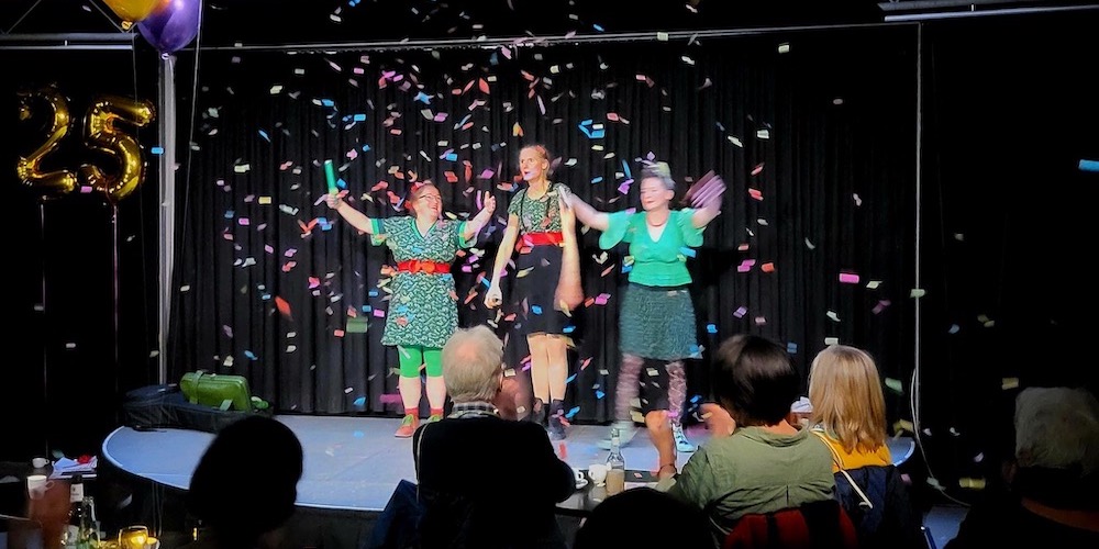 Für die Jubiläumsfeier hatte der Verein das clowneske Frauentrio „Dreierlei“ mit Stephanie Grüning, Judith Grubel und Katharina Losinzky aus Münster eingeladen. Ihr Auftritt mit mehrstimmigem Gesang, kombiniert mit Situationskomik und Glamour sorgte für viel Spaß und gute Stimmung. Die Jubiläumsgäste bedankten sich dafür mit tosendem Applaus und ließen den Abend mit einem gemeinsamen Umtrunk ausklingen.