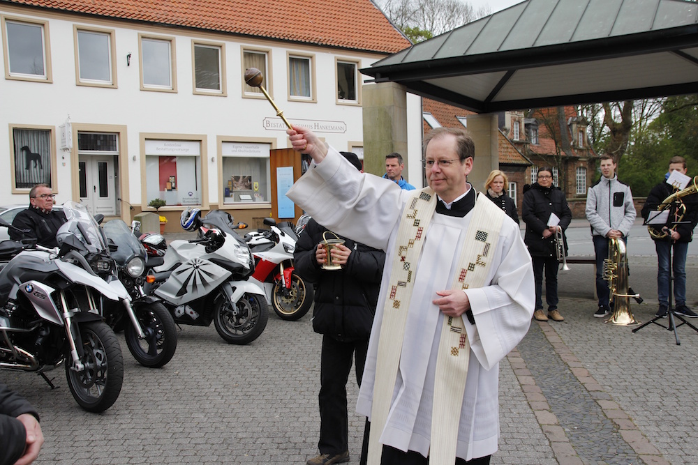 Im Anschluss daran nahm Pfarrer Rösner dann die eigentliche Segnung der Motorräder mit dem geweihten Wasser vor.