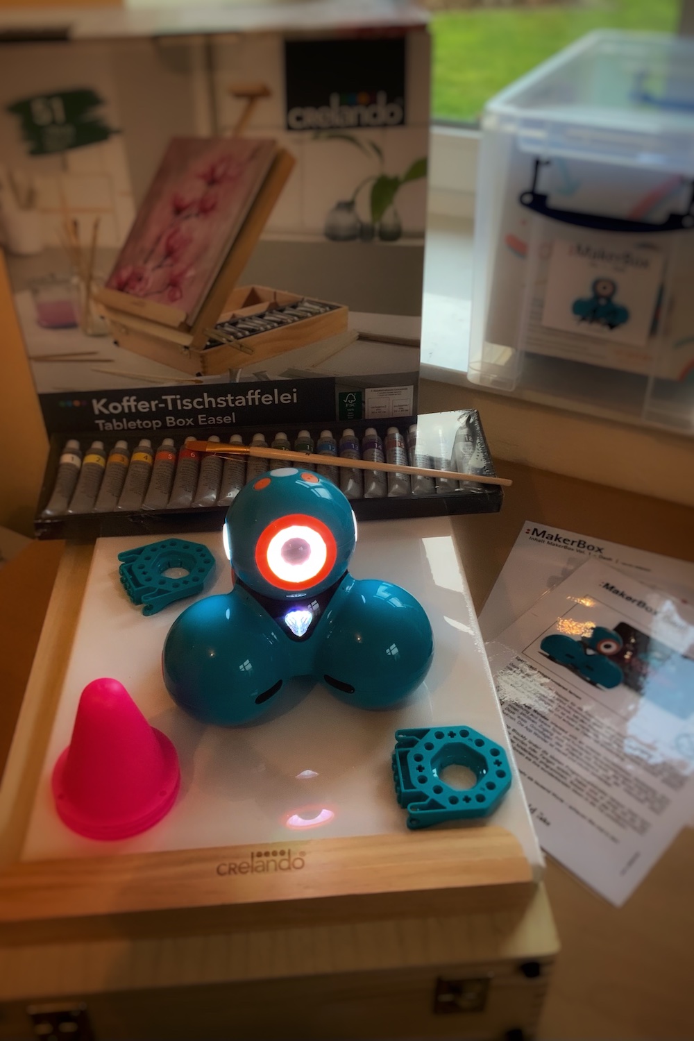 Schon seit längerer Zeit können eBook-Reader oder Tonie-Boxen ausgeliehen werden. Jetzt kommen programmierbare Roboter, Mikroskope, Experimentierkästen, aber auch Koffer-Staffeleien dazu. Einen aktuellen Überblick über den nach und nach wachsenden Bestand findet man immer auf der Startseite des Bibliothekskatalogs in der Rubrik ‚Bibliothek der Dinge‘.