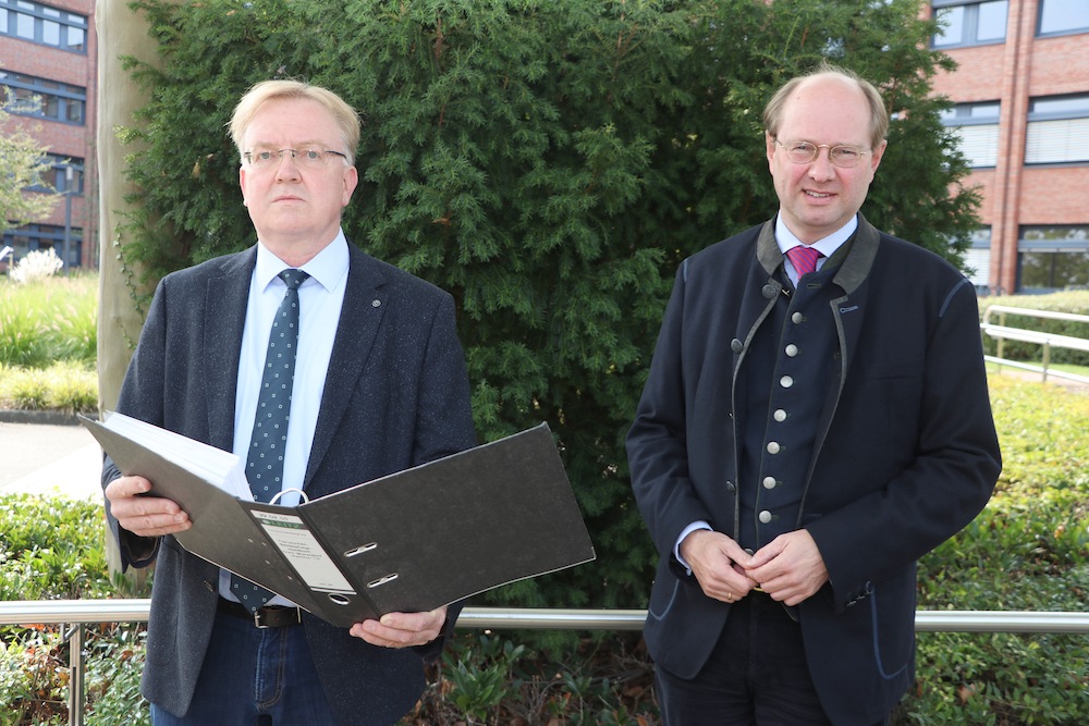 Wie sich der Kreis Warendorf auf einen möglichen Ausbruch der Afrikanischen Schweinepest vorbereitet hat, berichten Landrat Dr. Olaf Gericke und Veterinäramtsleiter Dr. Andreas Witte (l.). (Foto: Kreis Warendorf)