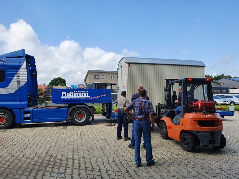 Zwei der Bauwagen sind von der Firma Vernold (Münster) gesponsert worden, einer von einem Warendorfer Bauunternehmer, den Transport hat die Spedition Schuckenberg-Mußmann (Sassenberg) kostenlos übernommen. „Das war nötig“, so Sylvia Oertker, „denn die Bauwagen dürfen nur mit 25 Kilometern in der Stunde bewegt werden, das hätte ja viel zu lange gedauert, und schnelle Hilfe ist erforderlich.“