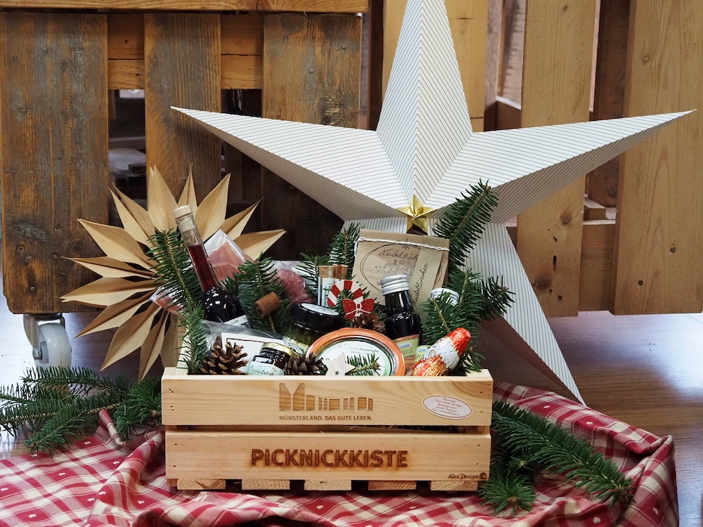 Wer auf der Suche ist nach einem originellen Weihnachtsgeschenk und dabei auf Regionalität und Nachhaltigkeit setzt, für den ist die Aktion „Verschenke ein Picknick“ genau das Richtige: Mehr als 50 Stadtmarketings, Tourist-Informationen, Erzeuger, Unternehmen und Hersteller aus mehr als 30 Orten im Münsterland haben pünktlich zur kalten Jahreszeit weihnachtliche Picknickkisten mit regionalen, lokalen und nachhaltigen Produkten gepackt. Auch Ostbevern ist wieder mit dabei und hat für die Ostbeveraner Picknickkisten mit Leckereien und Überraschungen zusammengestellt.