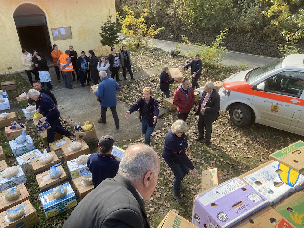 Die Malteser begleiteten eine Verteilaktion der Kapuzinerbrüder von Kleidungs- und Lebensmittelspenden und konnten erleben, wie dies den Menschen vor Ort eine unmittelbare Entlastung verschafft.