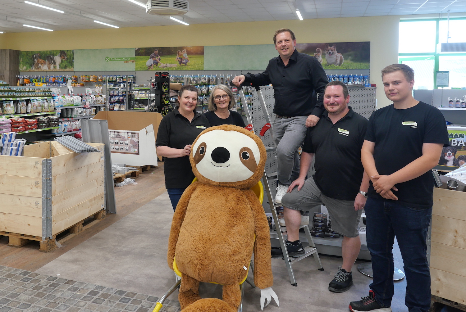 Tanja Will, Lisa Dahlhoff-Ruhe, Daniel Füchtenhans, Marco Haverkamp und Jonah Wies sind fünf des insgesamt 10-köpfigen Teams vom Raiffeisen-Markt Sassenberg, das herzlich zum „Wir sind jetzt fertig“ Wochenende einlädt. „Fauli“ wird an diesem Wochenende für einen guten Zweck verlost.