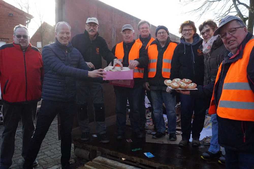 Sassenberg. Die Altpapiercontainer sind in Sassenberg seit dem Jahreswechsel abgebaut, die Papiertonnen fassen mitunter nicht alles, was im Laufe eines Monats zu entsorgen ist. „Wohin soll man beispielsweise mit den Pappen, wenn man einen neuen Fernseher kauft?“, weiß Jutta Zimmermann. Diese Überlegung war für die Aktiven der Kolpingsfamilie Sassenberg Grund genug, genau wie die Kollegen in Warendorf und Freckenhorst einmal im Monat eine Altpapierannahme zu organisieren. „Sie wird heute gut angenommen“, bilanzierte Anton Röhl am Samstag am Sassenberger Bauhof. Dort zu Gast war auch der heimische CDU-Landtagsabgeordnete Daniel Hagemeier. Allerdings nicht, um Papier zu entsorgen, sondern um sich bei den Aktiven der Kolpingsfamilie für ihr ehrenamtliches Engagement nicht nur bei der Sammlung von Altpapier zu bedanken. Im Gepäck hatte Hagemeier, der selbst Mitglied bei der Kolpingsfamilie in Oelde ist, Tabletts mit belegten Brötchen, so dass das zweite Frühstück bei der Altpapierannahme gesichert war.