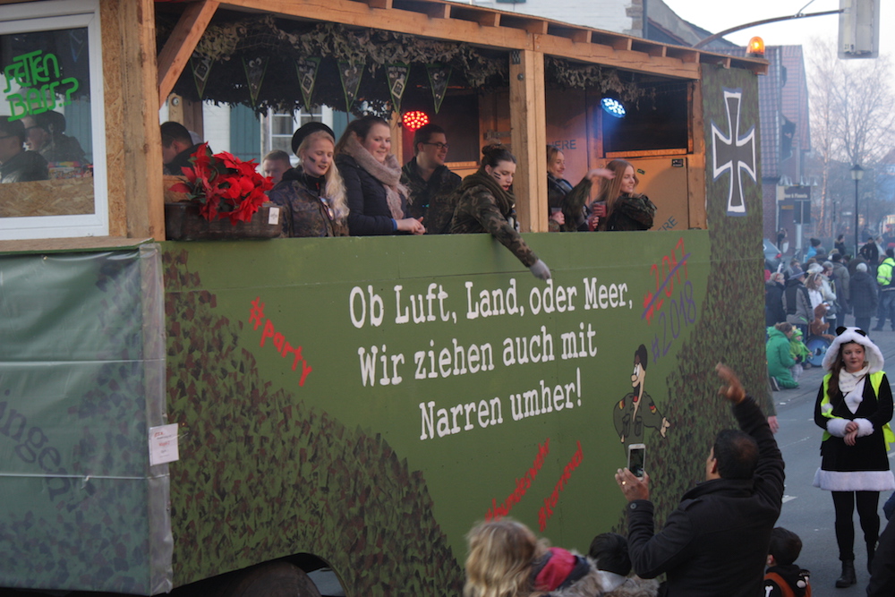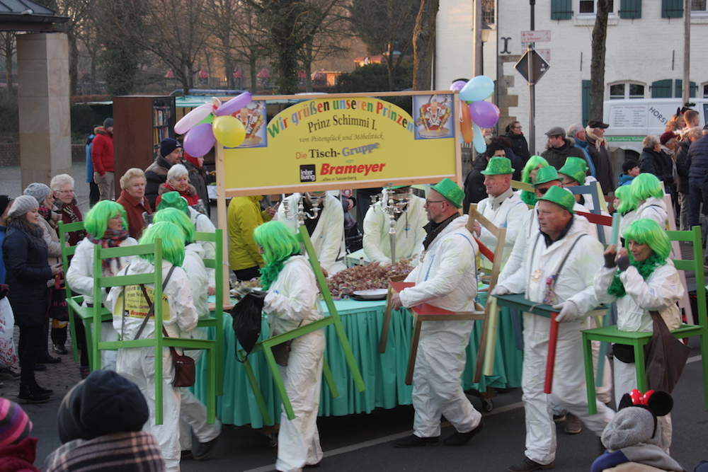 Auch in Sassenberg gibt es einen Karnevalsumzug. Und zwar immer schon etwas eher als in den Nachbargemeinden; nämlich zu Altweiber. Hier fährt Prinz Schimmi I. von Pistenglück und Möbelstück mit seinem Gefolge zur Rathausstürmung. Anschließend wird im Zelt auf dem Rathausplatz bis in die frühen Morgenstunden gefeiert. Schauen Sie selbst….