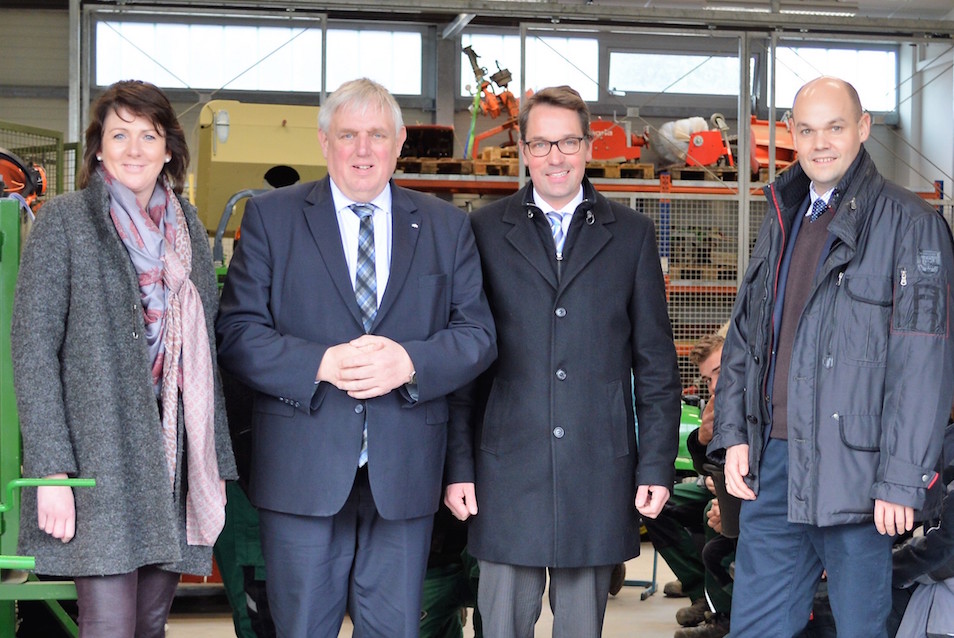 Arbeiten an neuen Ausbildungsstellen: Andrea Elisa Schütte (DEULA Geschäftsleitung), Minister Karl-Josef Laumann, Björn Plaas (DEULA Geschäftsführer), Christoph Lau (VGL-NRW Geschäftsführer)