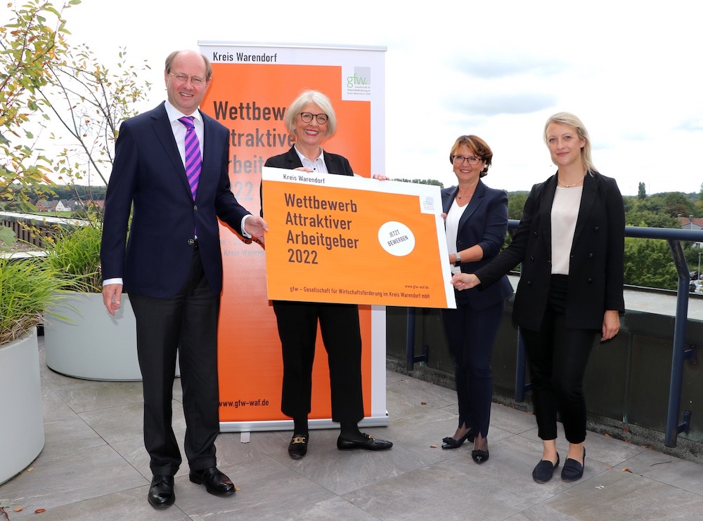 Viele Unternehmen haben nach Ansicht der gfw diese Chancen erkannt und engagieren sich ideenreich und weitsichtig dafür, attraktiver Arbeitgeber zu sein. Dieses Engagement will die Wirtschaftsförderung herausstellen und auszeichnen. Daher veranstaltet die gfw den Wettbewerb „Attraktiver Arbeitgeber im Kreis Warendorf“. Petra Michalczak-Hülsmann: „Starker Einsatz und gute Beispiele von Unternehmen als attraktive Arbeitgeber sind wichtig, damit der Kreis Warendorf als lebens- und leistungsstarke Region mit attraktiven und engagierten Arbeitgebern als Smart Country wahrgenommen wird.“