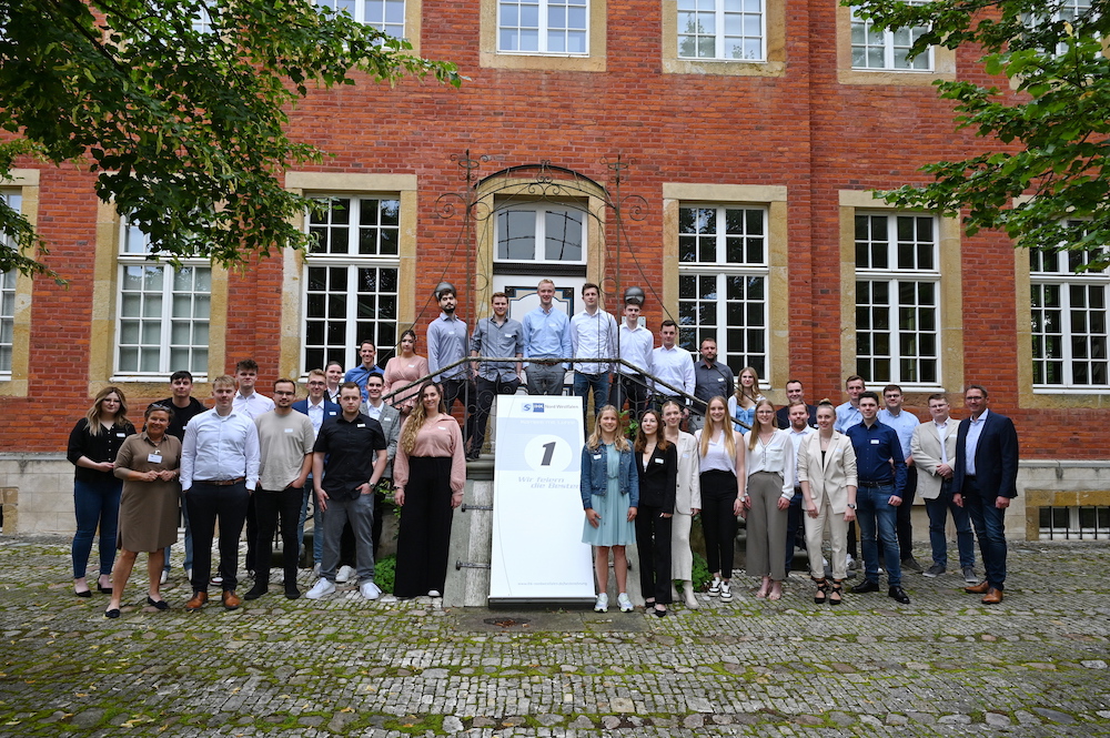 Kreis Warendorf / Oelde. – Als „überzeugende Vorbilder für die betriebliche Ausbildung“ bezeichnete Bernd Eßer, Vizepräsident der IHK Nord Westfalen, die 42 besten Auszubildenden von Unternehmen im Kreis Warendorf. Ihre IHK-Abschlussprüfung hatten sie mit der Traumnote „sehr gut“ abgeschlossen. Für diese Spitzenleistung wurden die jungen Fachkräfte und ihre Ausbildungsbetriebe heute (10. August) auf dem Kulturgut Haus Nottbeck in Oelde von rund 180 Gästen gefeiert.