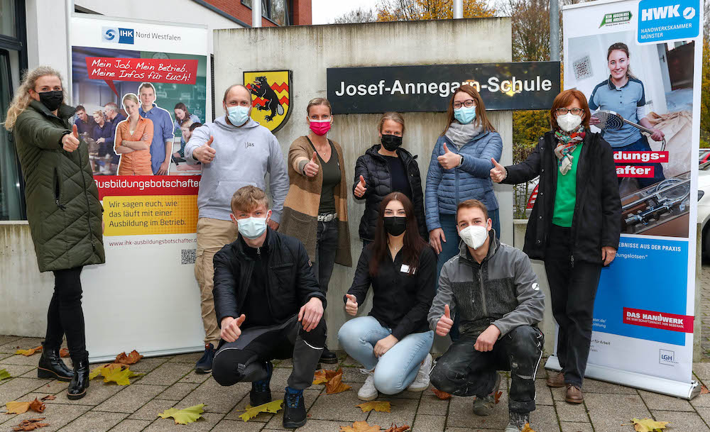 Folgende vier Auszubildende waren an der Sekundarschule in Ostbevern im Einsatz (in Klammern der Ausbildungsberuf): Laura Rehr (Kauffrau für Marketingkommunikation) und Leon Burghardt (Zerspanungsmechaniker) von der noltewerk GmbH & Co. KG in Greven, Vanessa Marainkeviciute (Friseurin) vom Friseur-Salon Stephan Winkels in Ostbevern sowie Gordon Steinkamp (Maurer) von der Averbeck Bau GmbH & Co. KG in Ostbevern.