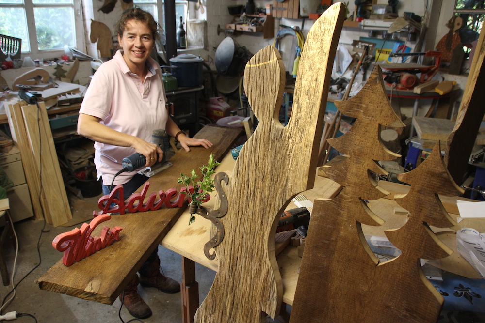 Die Produktion läuft bei Bärbel Sudhoff auf Hochtouren. Die Holzkünstlerin bereitet sich fleißig auf die Ausstellung „Winterlichter“ am 19. November im Alten Zollhaus vor.