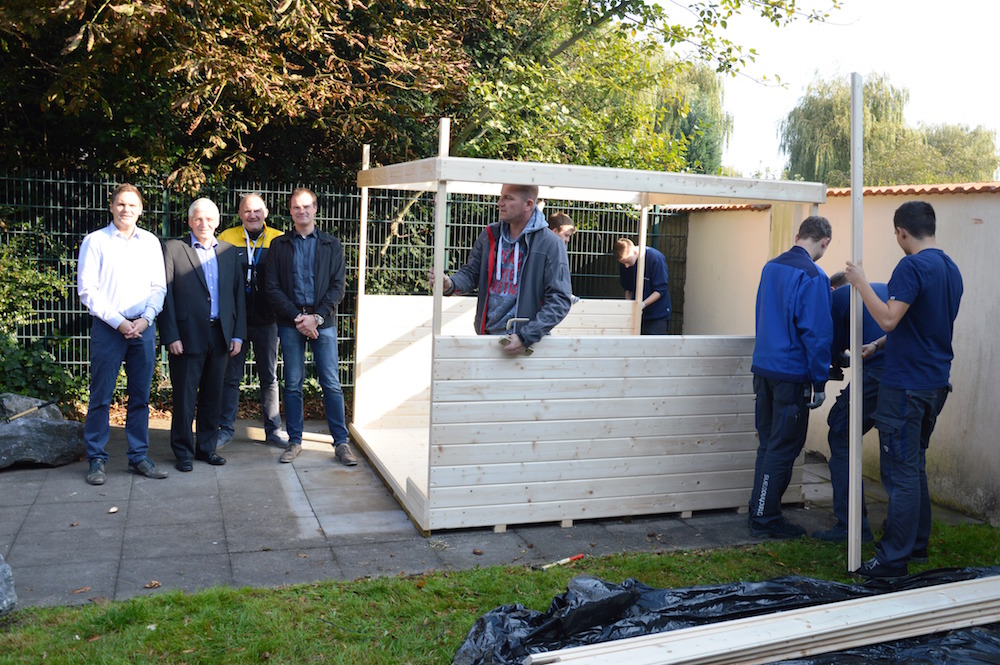 Colin, Robin, Marco, Maurice und Fabian befinden sich eigentlich in der Ausbildung zum Kälteanlagenbauer bei der Firma technotrans in Sassenberg. Am vergangenen Donnerstag allerdings waren sie als ehrenamtliche Häuslebauer tätig und als Maler aktiv. Im Rahmen des Social Day des Projektes „Akzeptanzoffensive“ der IHK Nordwestfalen hatten insgesamt 24 Auszubildenden aus den unterschiedlichsten Ausbildungsberufen den Wunsch, sich ebenfalls im Rahmen dieses Projektes sozial zu engagieren. Nils Hartmann, Sprecher der Auszubildenden der Firma technotrans in Sassenberg nahm kurzerhand Kontakt zu Bürgermeister Josef Uphoff auf und bot ihm die ehrenamtliche man- und womenpower von 24 Auszubildenden an. Vor dem Jugendzentrum am Lappenbrink wurde eine neues Gartenhaus errichtet und gestrichen. Die Gartenhäuser der städtischen Kindertageseinrichtungen Abenteuerland, Zauberland, Wolke 7 und Pusteblume erhielten ebenfalls einen neuen Anstrich. Leonie, Aylee und Lena strichen das Jugendzentrum in Füchtorf in helleren Farben. Timo Sterzl, Ausbildungsleiter der Firma technotrans, Bürgermeister Josef Uphoff, Stadtjugendpfleger Dirk Ackermann und Sozialamtsleiter Helmut Helfers waren sichtlich beeindruckt von dem Elan und dem ehrenamtlichen Engagement, das die jungen Mitarbeiter*innen an den Tag legten. „Soziales Engagement und Industrie passen hier perfekt zusammen.“ waren sich Josef Uphoff und Timo Sterzl einig.