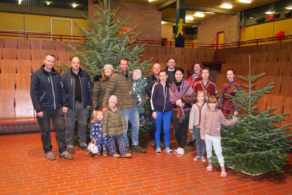 Für einen Hauch Weihnachten in der Franziskusschule hat jetzt die Familie von Hubertus und Julia Uehre gesorgt. In ihrem innovativen Baumschulbetrieb verkaufen sie Weihnachtsbäume. Als Hausmeister Dirk Ahrens dort fragte, ob nicht ein paar Bäume für Gemeinschaftsunterkünfte darunter wären, stimmten sie sofort zu und versprachen, Bäume für die Franziskusschule sowie die Unterbringungsstellen an der Bahnhofstraße, der Kleine Straße, dem Birkenweg und der Freckenhorster Straße zu spenden.