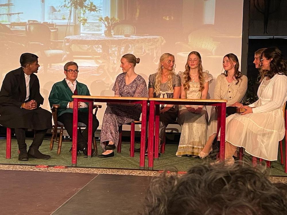 Die liebevoll gestaltete Inszenierung sprühte vor Einfällen, Witz und Intelligenz: Das Bühnenbild wurde durch Fotos von Salon, Ballsaal oder Park ergänzt. Durch stilechte und vor allem von Schülerinnen selbst choreographierte Tanzeinlagen wurde der Auftritt abgerundet.