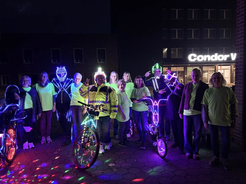 Am Samstagabend zeigten sich die Familien und ehrenamtlich Mitarbeitenden begeistert über die bunt leuchtenden Fahrräder und die fröhliche Musik. Nach dem ersten Staunen über die vielen Lichter nutzten Kinder und Erwachsene die Zeit, um Fotos mit den Diskallico Light Ridern zu machen. Gemütlich ausklingen ließen alle den Abend bei Kinderpunsch und den vorbereiteten Häppchen.
