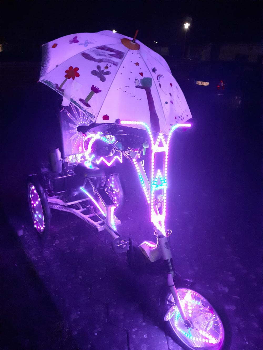 Am Samstagabend zeigten sich die Familien und ehrenamtlich Mitarbeitenden begeistert über die bunt leuchtenden Fahrräder und die fröhliche Musik. Nach dem ersten Staunen über die vielen Lichter nutzten Kinder und Erwachsene die Zeit, um Fotos mit den Diskallico Light Ridern zu machen. Gemütlich ausklingen ließen alle den Abend bei Kinderpunsch und den vorbereiteten Häppchen.