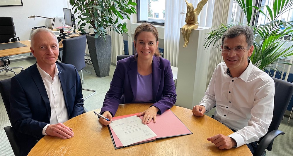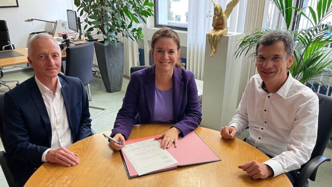 Foto (v.l.): Bürgermeister Wolfgang Pieper, die künftige Bürgermeisterin Katja Behrendt und Stephan Herzig als Allgemeinvertretung des Bürgermeisters. ©Stadt Telgte