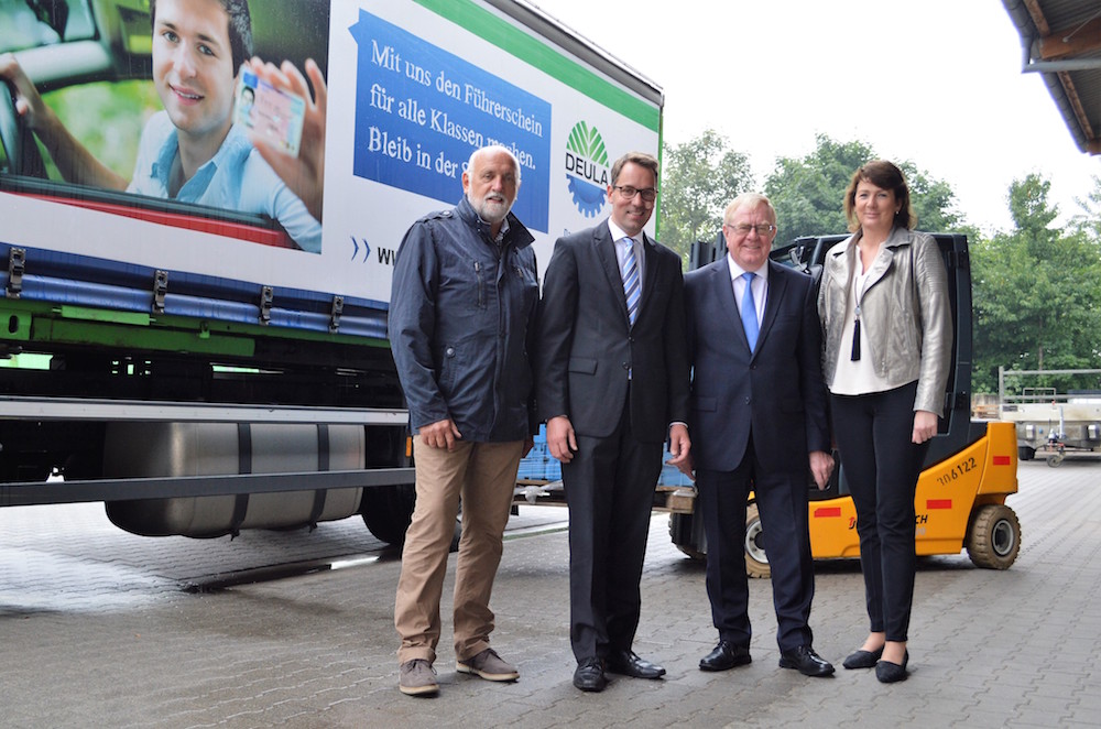 Allerdings seien auch der DEULA Grenzen gesetzt, erklärte der stellvertretende Schulleiter Rudolf Horstmann. So sei bei einigen Ausbildungsgängen die überbetriebliche Ausbildung sehr begrenzt. Als Beispiel nannte Horstmann hier die Azubis von landwirtschaftlichen Lohnunternehmen. Ihre Lehrzeit sehe nur eine Woche überbetriebliche Ausbildung vor. Das sei deutlich zu wenig. Sendker nahm diesen Einwand auf und versprach, auf politischer Ebene die Hintergründe zu klären. Eine gründliche Ausbildung sei nicht nur für die Azubis wichtig – sie sei auch ein entscheidender Wettbewerbsvorteil für deren Arbeitgeber! Als Beispiel nannte Sendker hier den Güterkraftverkehr. Die neuen Arbeitnehmerschutz-Regelungen, für die er sich in Berlin stark gemacht habe, würden den deutschen Speditionen auf Sicht einen deutlichen Vorteil gegenüber den Billiglohn-Unternehmen aus Osteuropa sichern. Eine kontinuierliche Weiterbildung ist auch für die Berufskraftfahrer Pflicht. Dafür hat die DEULA gerade einen Mitarbeiter als Operator für einen Fahrsimulator ausbilden lassen, an dem auch kritische Situationen wie z.B. Glatteis oder starker Seitenwind ohne Gefahr trainiert werden können. So sind die Fahrer für den Ernstfall besser gewappnet. Für die Berufskraftfahrer setzt sich der Verkehrsexperte Sendker schon seit Jahren ein und informiert sich regelmäßig über deren Aus- und Weiterbildung bei der DEULA: „Das Münsterland ist ein Logistik-Standort und dem müssen wir schon aus wirtschaftspolitischen Gründen, durch gute Ausbildung von Fachkräften, Rechnung tragen. Nur so können wir dem Lohn- und Sozialdumping der Billigkonkurrenz aus dem Ausland wirkungsvoll entgegentreten!“