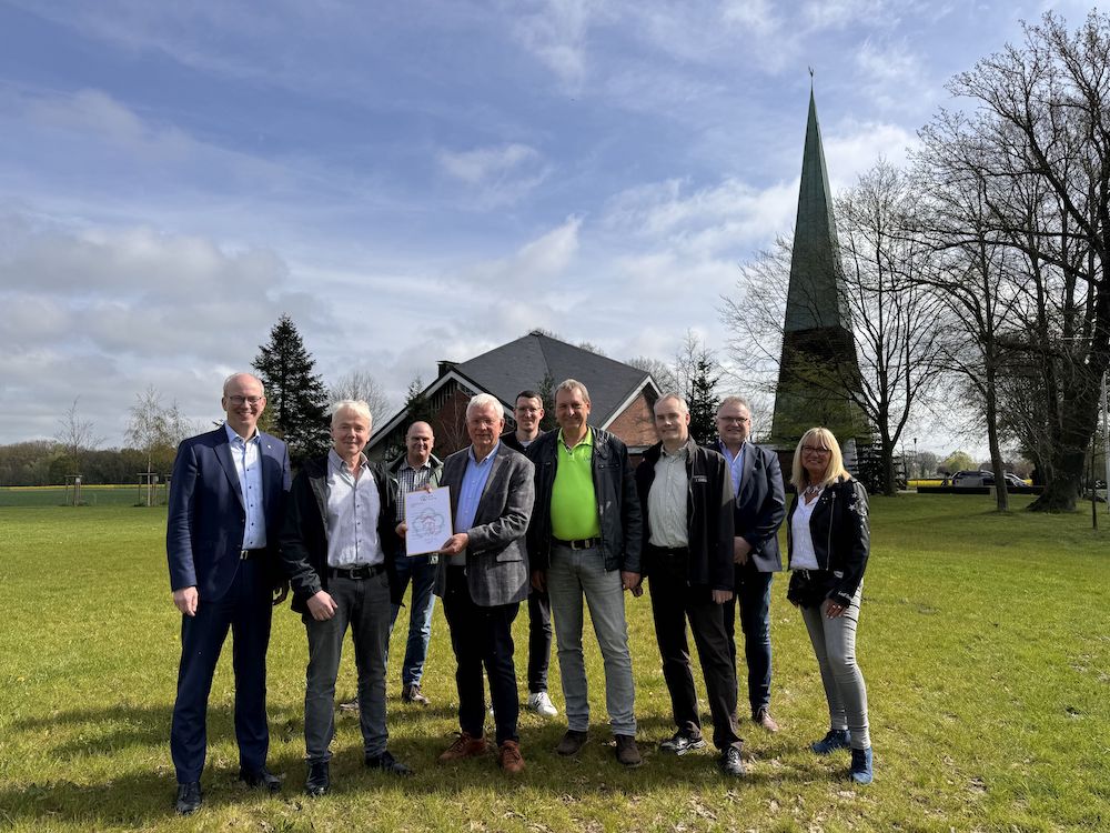 Telgte: Ein neuer Mittelpunkt für das Dorfleben soll in der Telgter Bauerschaft Raestrup entstehen – ein Gemeinschaftshaus soll das Zusammengehörigkeitsgefühl stärken und Veranstaltungsort für verschiedenste Anlässe sein. Die NRW-Stiftung unterstützt das Projekt und stellt dem Verein Raestruper Gemeindehaus bis zu 50.000 Euro für die technische Ertüchtigung des Gebäudes zur Verfügung. Zusätzlich verdoppelt sie jeden vom Verein eingeworbenen Euro bis zu einer Gesamtsumme von 35.000 Euro. Bei einem Besuch in Raestrup am 08.04.2024 überbrachte Stiftungspräsident Eckhard Uhlenberg die gute Nachricht und überreichte die Förderurkunde.