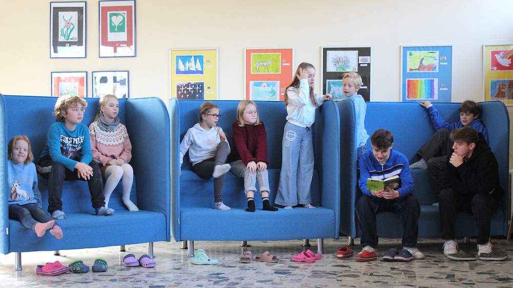 Welche fantastische Zeitreise Anne und Phillip zum Beispiel im Magischen Baumhaus erwartet, erfahren die Drittklässler von Carla Ernst und Livy Kaiser. Es geht zu den Dinosauriern, braun und gefleckt und riesengroß und definitiv in einer anderen Epoche lebend. Auch die anderen Drittklässler, denen die sechzehn Schülerinnen und Schüler des Leistungskurses Deutsch vorlesen, lernen fremde Welten kennen. Die Gespräche im Anschluss an das Vorlesen zeigen, wie sehr die Drittklässler das Vorlesen genossen haben. „Die Kinder erleben in der Familie, dass der Alltag durchgetaktet ist, da bleibt kaum Zeit zum Lesen“, gibt Franziska Meyer-Frenz zu bedenken, Lehrerin an der Bodelschwinghschule und Fachberaterin Deutsch für das Schulamt Warendorf: „Wir haben an der Bodelschwinghschule daher Rituale wie das Tandem-Lesen im Rahmen der Lesezeit eingeführt, das regelmäßig dreimal in der Woche für alle Klassen stattfindet. „Ziel ist, dass Texte nicht nur flüssiger gelesen, sondern auch besser verstanden werden.“