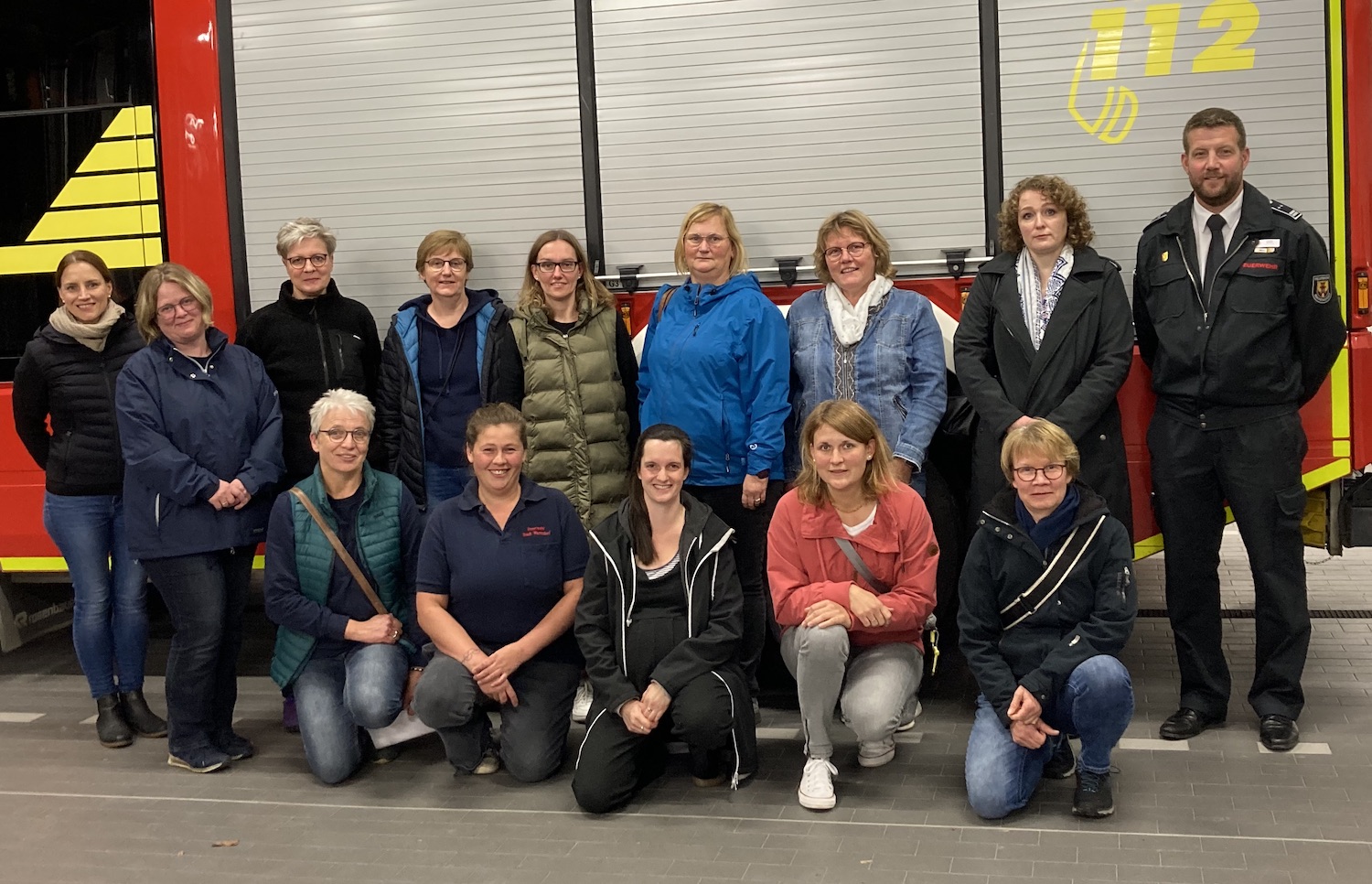 In Hoetmar trafen sich eine Vielzahl an Kindertagespflegepersonen aus dem Kreis Warendorf bei der Feuerwehr. Sie wurden vom Brandschutzoberinspektor Carten Recker im Brandschutz geschult. Jede Kindertagespflege hat vielfältige Auflagen an sichere und kindgerechte Räumlichkeiten zu erfüllen und belegt regelmäßig Fortbildungen. In diesem Rahmen sollte auch einmal der Umgang im Ernstfall besprochen werden. So wurden die bereits bestehenden Auflagen an die Räumlichkeiten noch mal neu betrachtet und sicherlich um den einen oder anderen Sicherheitsaspekt ergänzt. Nach einer theoretischen Schulung, die mit vielen Praxisbeispielen sowie kurzen Filmen sehr aufschlussreich und kurzweilig präsentiert wurde, durfte das Gerätehaus in Augenschein genommen werden. Höhepunkt der Veranstaltung, die von der Fachberatung für Kindertagespflege Nina Bisping von der AWO RLE organisiert wurde, war aber die praktische Übung. Die Kindertagespflegepersonen durften ein Feuer löschen und so einmal die Handhabung eines Feuerlöschers ausprobieren.