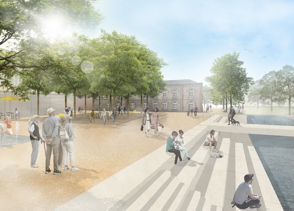 Der Siegerentwurf zeichnet sich durch die gute städtebauliche Integration von Bestandsgebäuden aus und sieht den Erhalt von Teilen der Sheddachhallen vor. Ein Beispiel ist die überzeugende Kombination aus der Wiederverwendung der Bestandshalle östlich der Wagenhalle zu einem „Mobilitätshub“ in Verbindung mit einer zum Stadtplatz orientierten Gastronomie. All dies kann man sich vor Ort ansehen.