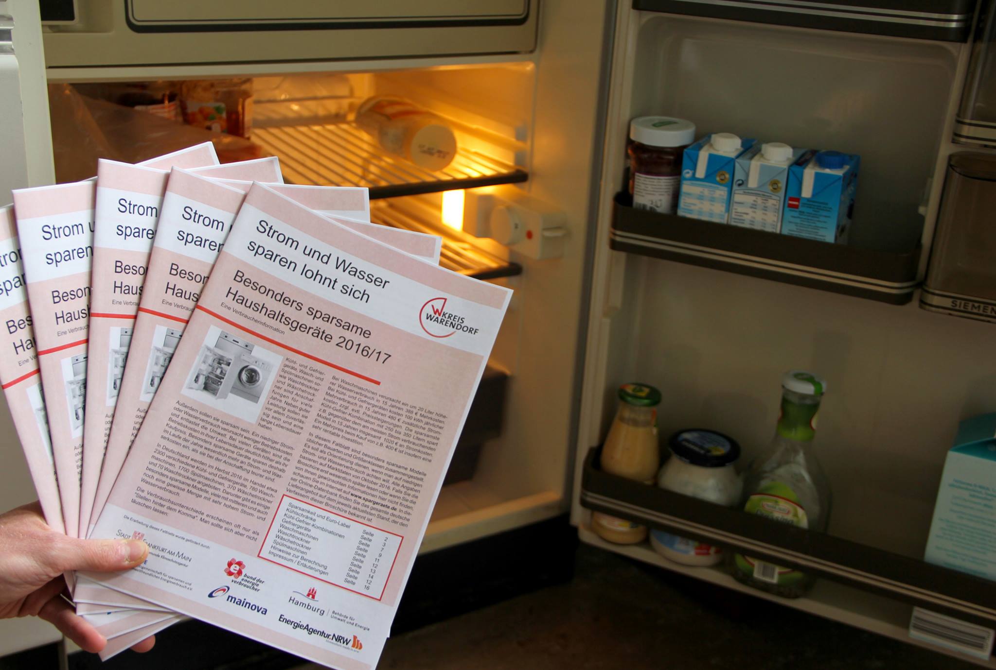 Sie denken über die Neuanschaffung einer Spülmaschine, eines Wäschetrockners oder eines Kühlschrankes nach? In der aktualisierten Version der Broschüre „Besonders sparsame Haushaltsgeräte“, die ab sofort zur Verfügung steht, finden Sie effiziente Kühl- und Gefriergeräte, Wasch- und Spülmaschinen sowie Wäschetrockner und Waschtrockner, die dank ihres niedrigen Strom- und Wasserbedarfs besonders geringe Betriebskosten verursachen. Das Heft ist im Rahmen der Kampagne „Kompliment altes Haus! Aktion Altbau“ des Kreises Warendorf erhältlich, die sich unter anderem mit dem Thema Energiesparen beschäftigt.