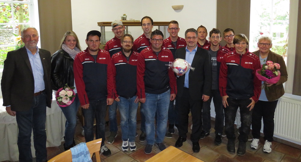 Bürgermeister Axel Linke ließ es sich nicht nehmen, den Einsatz der Fußballer zu würdigen und brachte neben einem Ball für das Training auch einen Scheck zur Unterstützung des Teams mit. „Und wenn ihr mal wieder einen Ligaspieltag in Warendorf habt, gebt mir Bescheid, dann will ich euch auch mal kicken sehen!“ gab Linke dem Team abschließend mit auf den Weg.