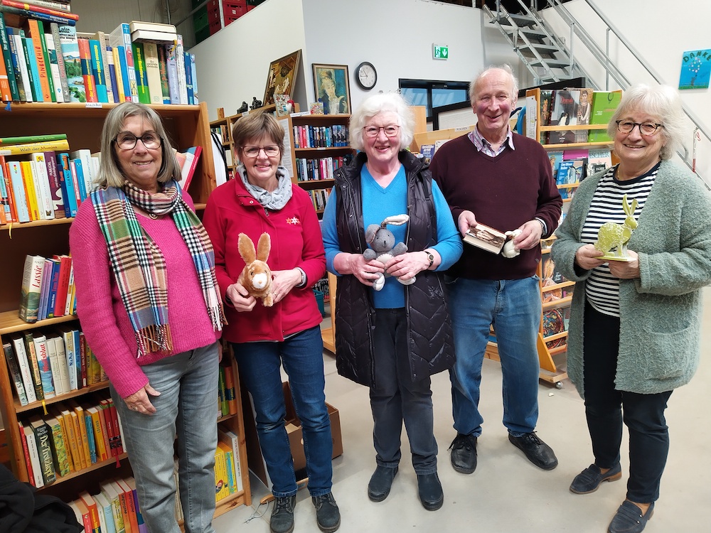 Aber nicht nur Bücher werden angeboten. Schon längst ist es Tradition, dass andere Teams sich anschließen. Die Teams Spiele und CDs sind immer dabei, diesmal, zur Jahreszeit passend, auch das Team Osterdeko. „Wir haben wieder eine Menge zu bieten“, freut sich Maria Kirsch, zuständig für die Osterabteilung und stellvertretend für die anderen Teams. „Die Arbeit im Vorfeld – wir müssen ja viel sortieren, prüfen, reinigen, aufbewahren – wird dadurch wettgemacht,  dass wir die schönen gespendeten Dinge präsentieren können und nachhaltiger Wiederverwendung zuführen. Außerdem haben wir Einnahmen, die unseren Projekten für Kinder in Not zugute kommen. Damit sind wir rundum zufrieden, und unsere Kundinnen und Kunden sind es auch.“