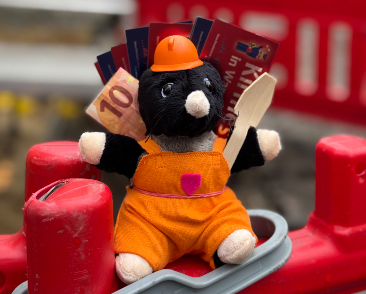 Wer das Baustellen Maskottchen Buddel Grabowski in den nächsten Wochen als erster findet, kann gewinnen.