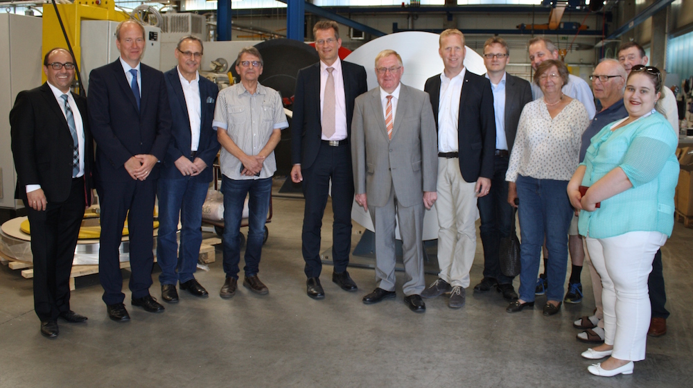 Unser Foto zeigt: Die Vertreter der CDA mit dem CDA-Landesvorsitzenden Dr. Ralf Brauksiepe, dem Bundestagsabgeordneten Reinhold Sendker und dem Landtagsabgeordneten Henning Rehbaum bei den Westfälischen Rohrwerke (WRW) in Ahlen.