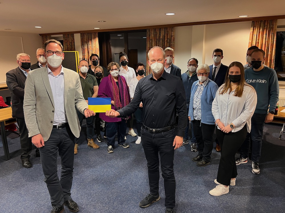 Zu einer Sondersitzung traf sich der Vorstand des CDU-Kreisverbands Warendorf-Beckum am Freitag Abend auf dem Hof Meier-Gresshoff in Oelde. Zentrales Thema war der Angriffskrieg auf die Ukraine und seine Auswirkungen auf den Kreis Warendorf. Der Vorsitzende Markus Höner stellte direkt zu Beginn fest: „Wir stehen an der Seite der Menschen in der Ukraine und der in die Nachbarländer Geflüchteten, besonders nach Polen und nach Deutschland.“ Der Bundestagsabgeordnete Henning Rehbaum berichtete zunächst über die parteiübergreifenden Maßnahmen zur Unterstützung der Ukraine und über die Anträge der CDU/CSU-Fraktion zur Senkung der Steuerbelastung auf Kraftstoffe und zur Stärkung der Landwirtschaft zur Ernährungssicherung in Deutschland und Europa. Daniel Hagemeier als Landtagsabgeordneter erläuterte die bereits angelaufenen Maßnahmen der NRW-Landesregierung zum Hochfahren zentraler Aufnahmeeinrichtungen für die Aufnahme ukrainischer Flüchtlinge, und der von Markus Höner eingeladene Kreisdirektor Dr. Stefan Funke erklärte, wie der Kreis sich systematisch auf die noch unklare Anzahl ankommender Flüchtlinge vorbereitet. Auch die Finanzierung müsse kurzfristig durch die Bundesregierung geklärt werden. Die CDU-Vorstandsmitglieder aus den einzelnen Städten und Gemeinden berichteten von überwältigender Hilfsbereitschaft der Bürger und Unternehmen vor Ort. Markus Höner bedankte sich bei den Bürgen und bat die Vorstandsmitglieder, den Dank weiter in die Gemeinden zu tragen. Zum Abschluss der mehrstündigen Sitzung fasste Markus Höner die Erkenntnisse der Diskussion als Appell an die Bürger zusammen: „Die CDU begrüßt die überwältigende Hilfsbereitschaft unserer Bürger und Unternehmen. Bitte melden Sie freie Wohnungen an Ihr Rathaus, klären Sie Ideen für Hilfsangebote grundsätzlich mit Ihrer Stadtverwaltung und sehen bitte von Fahrten auf eigene Faust ab. Melden Sie sich gerne, wenn Sie als Helferin oder Helfer oder in der Flüchtlingsbetreuung mit anpacken wollen. Und: Bitte spenden Sie, idealerweise Geld, an eine internationale Hilfsorganisation, um für die Geflüchteten Ukrainer in Polen und hier Hilfsgüter zu kaufen, die am dringendsten benötigt werden.“ Die CDU empfiehlt eine Online-Spende auf das Konto des Deutschen Roten Kreuzes Kreis Warendorf unter DRK-KV-WAF.de oder an Caritas-international.de