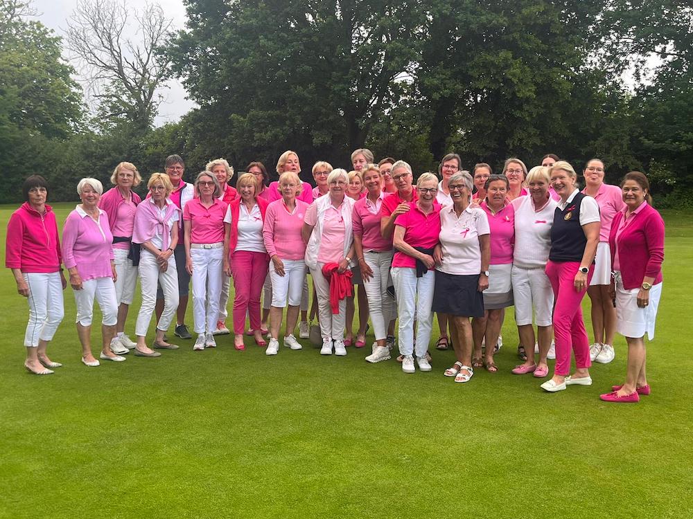 Pink Ribbon (=pinke Schleife) Deutschland ist eine gemeinnützige Organisation, die sich zum Ziel gesetzt hat, die Aufmerksamkeit im Hinblick auf Brustkrebserkrankungen zu erhöhen und insoweit für mehr Aufklärung zu sorgen. Ladiescaptain Stefany vom Berg hat die Idee in Verbindung mit einem Damenturniertag gerne aufgegriffen und den ersten „Pink Ribbon Damentag“ im Golfclub Schloss Vornholz angeboten – und das mit einer tollen Resonanz! 35 Teilnehmerinnen gingen überwiegend in pink gekleidet bei herrlichem Wetter an den Start. Neben einem gelungenen Golftag stand die Aufklärung zum Thema Brustkrebs im Fokus der Damen. Am Ende des Tages konnte eine Spende vom Turniertag in Höhe von 650 Euro an die gemeinnützige Organisation weitergegeben werden. Aber auch die sportlichen Erfolge wurden honoriert: den Sieg in der Gruppe A konnte Stefany vom Berg erreichen, Siegerin der Gruppe B wurde Miriam Geise, ein Gast aus dem benachbarten Golfclub Münster-Tinnen, beide schlaggleich mit 71 Nettoschlägen. Gesamtsiegerin des Charity-Turniers wurde Tanja Kalisch mit einer Brutto 87.
