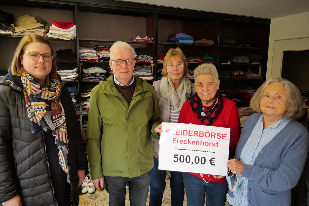 Weitere Spenden stammen oft von Einrichtungen, die selber als karitativ gelten. So konnte der Warenkorb im November eine Spende in Höhe von 500 Euro von der Kleiderbörse in Freckenhorst entgegennehmen. Dafür hatten Roswitha Habbe, Karin Drecker und Annette Nitzler in den Vormonaten das getan, was sie schon seit langem tun: Sie nehmen gespendete Kleidungsstücke und Schuhe an, sichten die Spenden und geben diese gegen einen kleinen Obolus an Interessierte weiter. Mit diesem kleinen Betrag verhindern sie, dass die Stücke wertlos erscheinen. Zum anderen kommen so immer wieder Spenden zusammen.