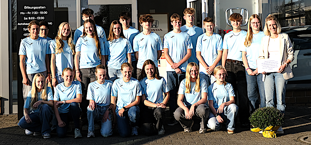 Anfang Oktober besuchten die Leichtathleten der Warendorfer SU das Autohaus Strohbücker in Warendorf, um sich bei Nina Strohbücker und ihrem Team zu bedanken.