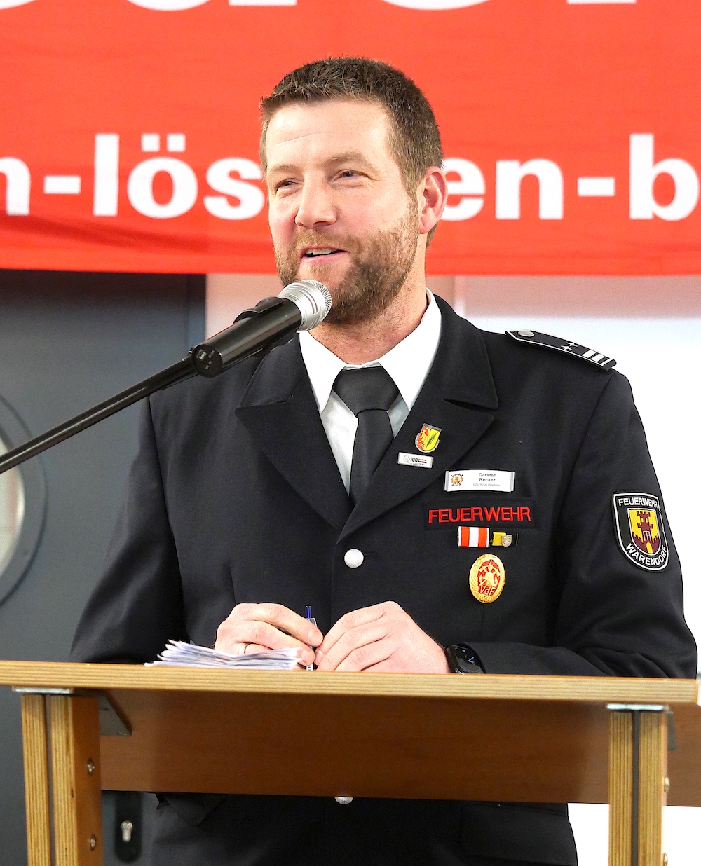 Die Kameradschaft sei das höchste Gut der Wehr, betonte Wehrführer Frank Sölken. Zudem nahm er angesichts der gesellschaftspolitischen Lage ebenfalls die von Recker angesprochenen neuen Herausforderungen in den Blick und forderte „Resilienz vor Ideologie, Sicherheit vor Symbolpolitik“. Denn die Gefahren seien offensichtlich.