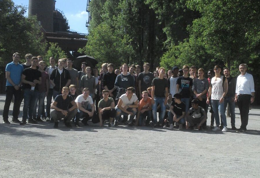 Zunächst führte die Tour die Gruppe in das sogenannte Kruppquartier. Bei der Betrachtung des modernen Unternehmenshauptsitzes des Global Players ThyssenKrupp war für die Schüler nur schwer vorstellbar, wie das Betriebsgelände in der industriellen Hochphase ausgesehen hat. Anschließend bestiegen die Schülerinnen und Schüler die Schurenbachhalde, um nicht nur die besondere Aussicht über das Ruhrgebiet zu genießen, sondern auch etwas über die Entstehung von Halden und ihre Funktion in der Gegenwart zu erfahren. Passend zur Mittagszeit gelangte die Gruppe zum CentrO Oberhausen. Nachdem sich alle über den Funktionswandel von der einstigen Gutehoffnungshütte hin zu einem modernen Dienstleistungs- und Freizeitzentrum in Oberhausens Neuer Mitte informiert hatten, war auch noch etwas Zeit zur Stärkung. Den Abschluss machte ein Besuch im Landschaftspark Duisburg-Nord. Als kleine Überraschung erwartete die Gruppe hier eine besondere Führung durch den Geschäftsführer des Landschaftsparks und Alten Laurentianer Ralf Winkels (Abiturjahrgang 1978), der sich gerne Zeit genommen hat, für die Schülerinnen und Schüler seiner alten Schule auch eigentlich verschlossene Türen zu öffnen und somit einen ganz besonderen Einblick in die Vielfalt des Landschaftsparks zu gewähren.