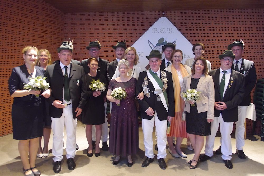 Er hatte es sich gewünscht und er hatte nicht viele Mitbewerber. Das machte die Sache für Thorsten Unland im Warendorfer Ostbezirk nicht gerade leichter, denn er musste nahezu alleine den Vogel erst locker und dann herunterschießen. Dies gelang ihm um 16:15 Uhr mit dem 242. Schuss. Zur Königin nahm er seine Ehefrau Anne Unland und lud Gabi Wiedeler und Jörg Rehfeld, Ingrid und Herbert Hülsmann, Ruth und Werner Ostlinning, Maria und Andreas Kunstleve, Petra Jungemann und Georg Kamp, sowie Nicole und Sascha Redenz ein, seine Throngesellschaft zu bilden. Zu ihnen zählen auch Susanne und Frank Korte, die aus privaten Gründen erst später zum Thron stoßen.
