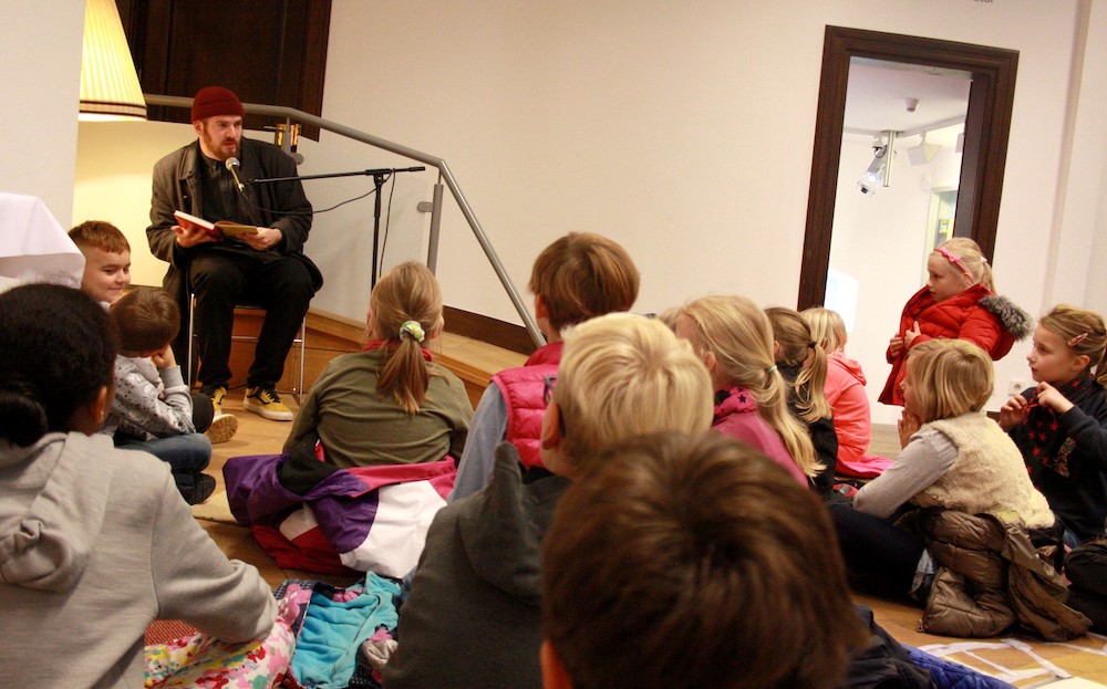 Die Lambertusschule Oelde nahm das Angebot gerne an und kam am Freitag (16. November) mit ihren gesamten zweiten und dritten Jahrgängen nach Nottbeck. Im neu gestalteten Ausstellungsraum des Literaturmuseums lauschten die Schülerinnen und Schüler der Geschichte „Igraine Ohnefurcht“ von Cornelia Funke. Vorgetragen wurde diese von Johannes Dreyer, dem wissenschaftlichen Volontär im Kulturgut Haus Nottbeck. Dem Vorleser gelang es, mit Funkes Fantasyroman rund um die Zauberertochter Igraine und ihrer Familie eine besondere Leseatmosphäre zu schaffen – durch eine sehr lebendige Erzählstimme und die liebevoll gestaltete Leseumgebung.