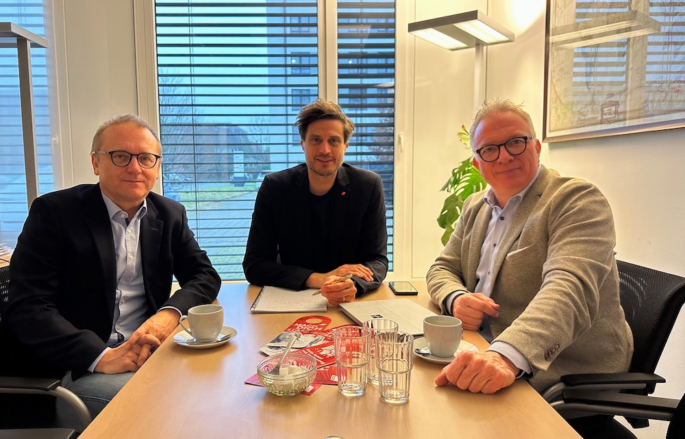 5 Themen sind DGB Münsterland und Kreishandwerkerschaft Steinfurt Warendorf dabei besonders wichtig. „Wenn man so will, sind das unsere „5 für 25“, sagen Volker Nicolai-Koß, Heinz-Bernd Lohmann und Frank Tischner und nennen als ersten Punkt die Stärkung der sozialen Marktwirtschaft. „Dazu gehört beispielsweise die Stärkung der Tarifautonomie und der Tarifbindung sowie aus Sicht des Handwerks auch eine Senkung der Lohnnebenkosten. Wenn Betriebe und Beschäftigte bei Steuern und Abgaben entlastet werden, haben die Arbeitnehmer mehr Geld in der Tasche und der private Konsum wird gestärkt. Zudem entstehen Impulse für Beschäftigung und Investitionen.“ Ein zweites Handlungsfeld sehen beide im Bürokratieabbau, von dem Unternehmen und Beschäftigte gleichermaßen profitieren würden. „Die Abschaffung überflüssiger Vorgaben stärkt die Wirtschaft und sichert Arbeitsplätze“, ist Frank Tischner überzeugt. Und auch im Umgang mit Bürgeranliegen könnten viele Prozesse effizienter, schneller und digitaler abgewickelt werden.