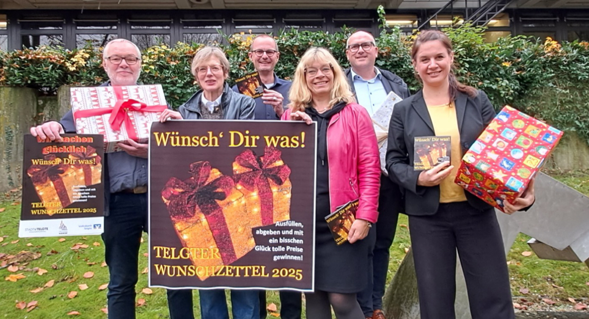 Das Kooperationsprojekt „Telgter Wunschzettel – Wünsch Dir was!“ der Telgter Hanse e.V. und Wirtschaftsförderung der Stadt Telgte mit freundlicher Unterstützung der Volksbank Münsterland Nord eG geht in die nächste Runde. Das Wunschzettelheft ist bei allen teilnehmenden Geschäften und bei der Volksbank in Telgte erhältlich (nur solange der Vorrat reicht).