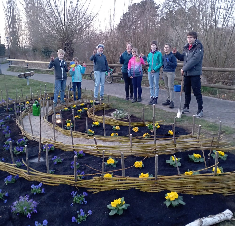 Mit Unterstützung der Naturschutzjugend wurde die „Essbare Stadt“ an der Kolkstiege in Warendorf um ein Mandala-Beet mit essbaren Pflanzen erweitert