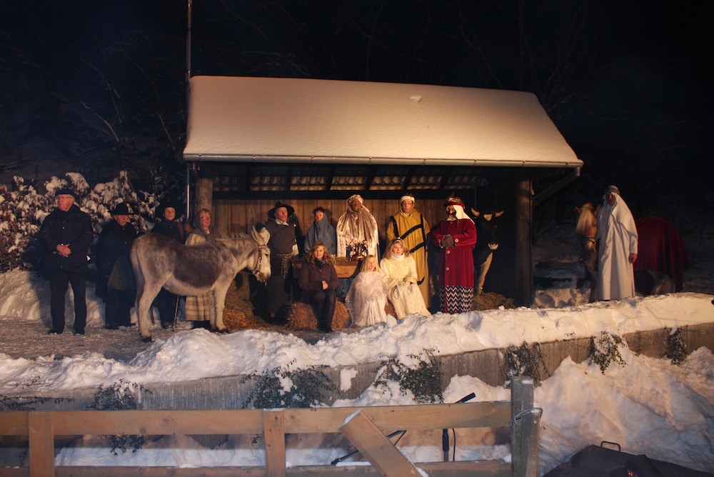 Auch die Gesangs- und Posauneneinlagen, sowie die lebenden Tiere, wie sie eben zur Weihnachtsgeschichte dazugehören – Schafe, Esel und Pferd – lassen den Abend zu einem ganz besonderen Erlebnis für Kinder und Erwachsene werden.