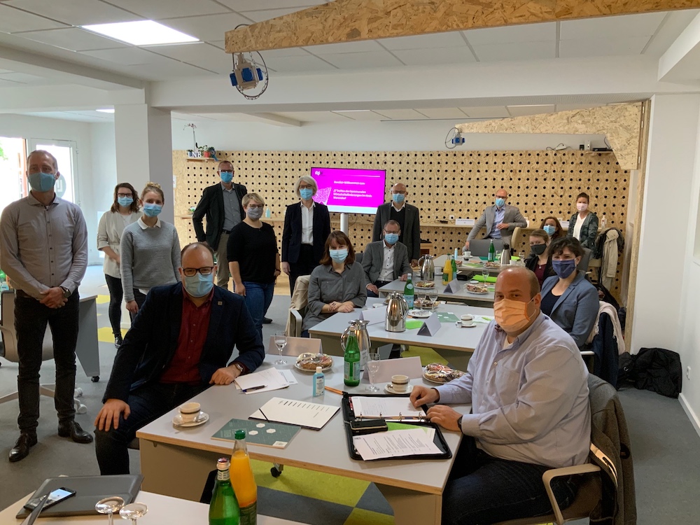 Wie wichtig der Ausbau des Glasfasernetzes im Kreis Warendorf ist, wurde bei einer Tagung der kommunalen Wirtschaftsförderungen der 13 Städte und Gemeinden am Dienstag (6. Oktober) in Beckum deutlich. Zusammengekommen waren die kommunalen Wirtschaftsförderer auf Einladung der Gesellschaft für Wirtschaftsförderung im Kreis Warendorf (gfw) bei „Work LnB Coworking powered by Berief Food GmbH“, und Berief-Digitalchef Christoph Lehrke wies gleich darauf hin: „Ohne das Hochgeschwidigkeitsnetz können wir die digitale Transformatipon unserer Arbeitsprozesse gar nicht steuern.“ Ralf Hübscher vom Gigabit-Büro des Kreises und der gfw informierte über den aktuellen Stand des Glasfaserausbaus, der zur Zeit unter dem Motto „Mehr Gigabit für den Kreis Warendorf“ vorangetrieben wird.