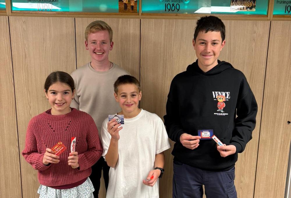 Mario-Kart-Turnier (h.v.l. Silas Waldmann (Jugendwart) v.v.l Eileen Große Beckmann, Adrijan Simons, Achim Aerdker)