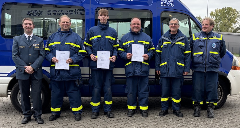 Kürzlich stand für drei Grundausbildungsmitglieder des Ortsverbandes Warendorf der Bundesanstalt Technisches Hilfswerk (THW) die Grundausbildungsprüfung an, welche sie erfolgreich absolvierten.